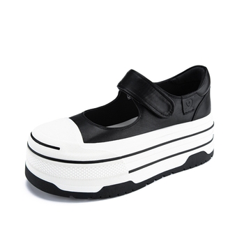 أحذية رياضية نسائية أنيقة مكتنزة بنعل سويت ماري جين أحذية جلدية أبيض وأسود أحذية مشي مريحة أحذية كاجوال OEM